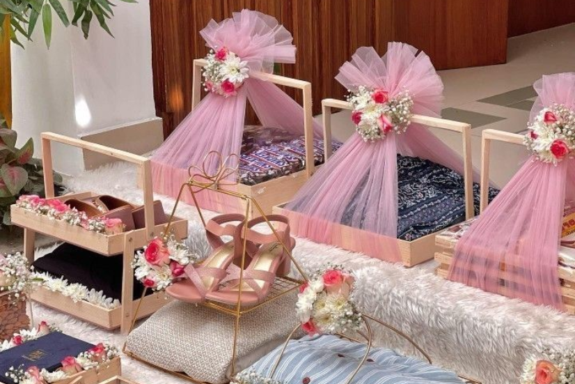 The presentation of gifts is an art form in Pakistani weddings. Gone are the days of simple gift bags. The trend is all about elegant, custom-decorated baskets and trays that are almost gifts in themselves. These range from polished wooden frames draped with sheer, embellished fabrics and artificial flowers, to ornate boxes and platters.